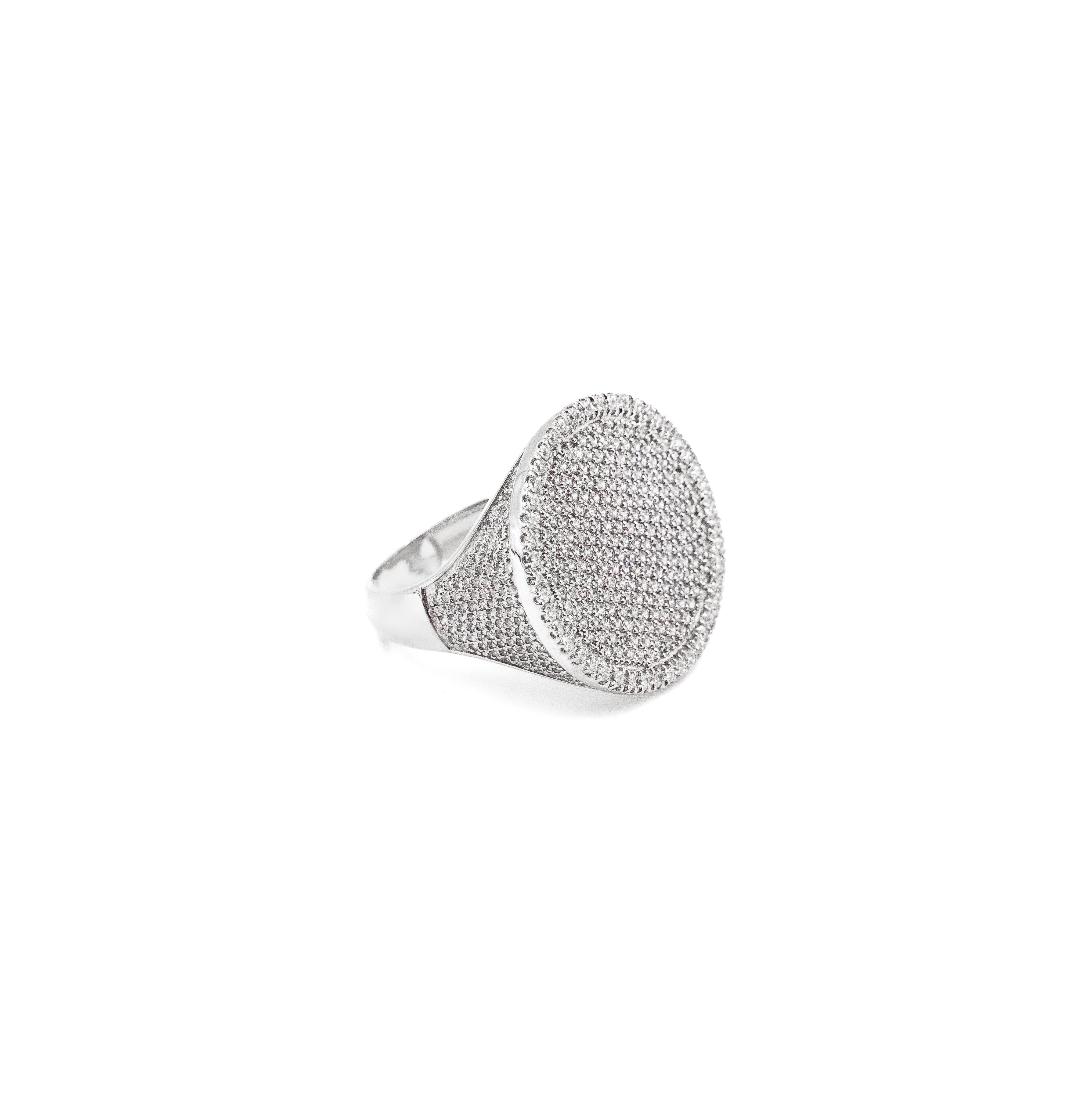 | Round Signet Ring, a symbol of timeless sophistication reimagined in diamonds. The classic signet design takes on a new level of opulence with meticulously set diamonds, creating a sparkling surface that adds a touch of glamour to the traditional round shape. |